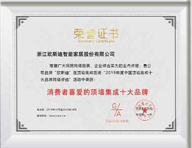It has successively won the honorary title of China Building Decoration Industry Promotion Brand, China Ceiling Ceiling Executive Director Unit, China Ceiling Industry Outstanding Enterprise, Tencent Home Environmental Health Brand and Safety Production Standardization Grade III Enterprise, and has won the “Top 10 China Integrated Ceiling Industry” for ten consecutive years. Brand"