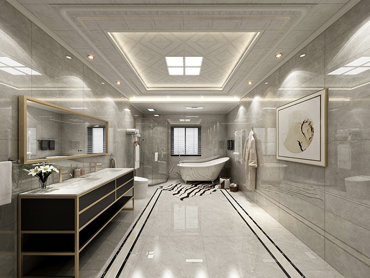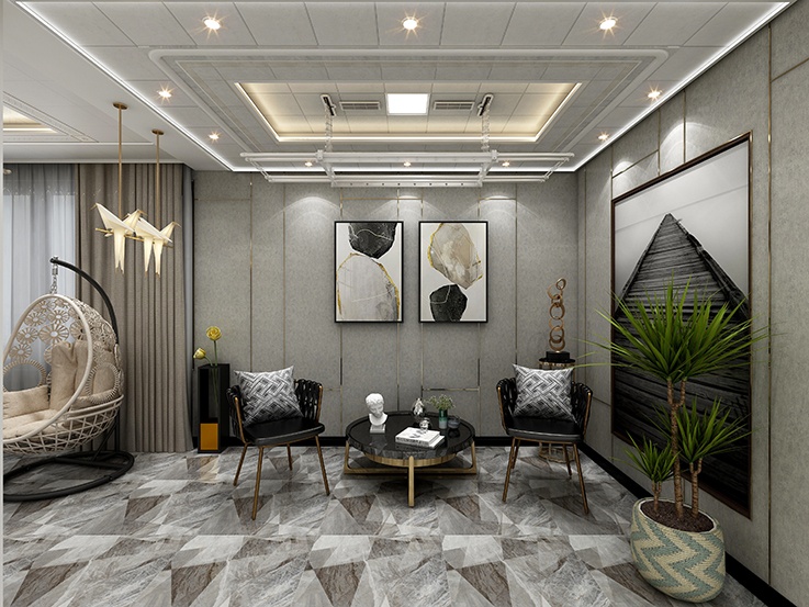 現(xiàn)代藝術(shù)的承轉(zhuǎn)啟合,灰色都扮演著重要的角色,設(shè)計(jì)運(yùn)用灰色石紋,結(jié)合香檳金高貴典雅的氣質(zhì),使整個(gè)設(shè)計(jì)充滿了現(xiàn)代美感。