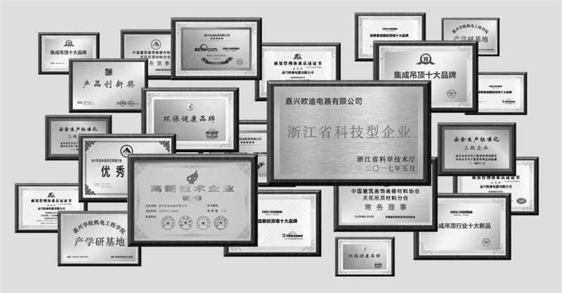 作為一家國(guó)家高新技術(shù)企業(yè)、浙江省科技型企業(yè)、嘉興學(xué)院產(chǎn)學(xué)研基地,其產(chǎn)品全面通過(guò)國(guó)家3C認(rèn)證、安全生產(chǎn)標(biāo)準(zhǔn)化三級(jí)企業(yè)、115項(xiàng)國(guó)家專利技術(shù)、ISO9001質(zhì)量管理體系認(rèn)證,并先后獲得“中國(guó)建筑裝飾行業(yè)推廣品牌”、 “ 中國(guó)吊頂行業(yè)優(yōu)秀企業(yè)”、“ 騰訊家居環(huán)保健康品牌”、“ 中國(guó)建筑裝飾裝修材料協(xié)會(huì)產(chǎn)品創(chuàng)新獎(jiǎng)”、“中國(guó)集成吊頂行業(yè)十大新品”等榮譽(yù)稱號(hào)。