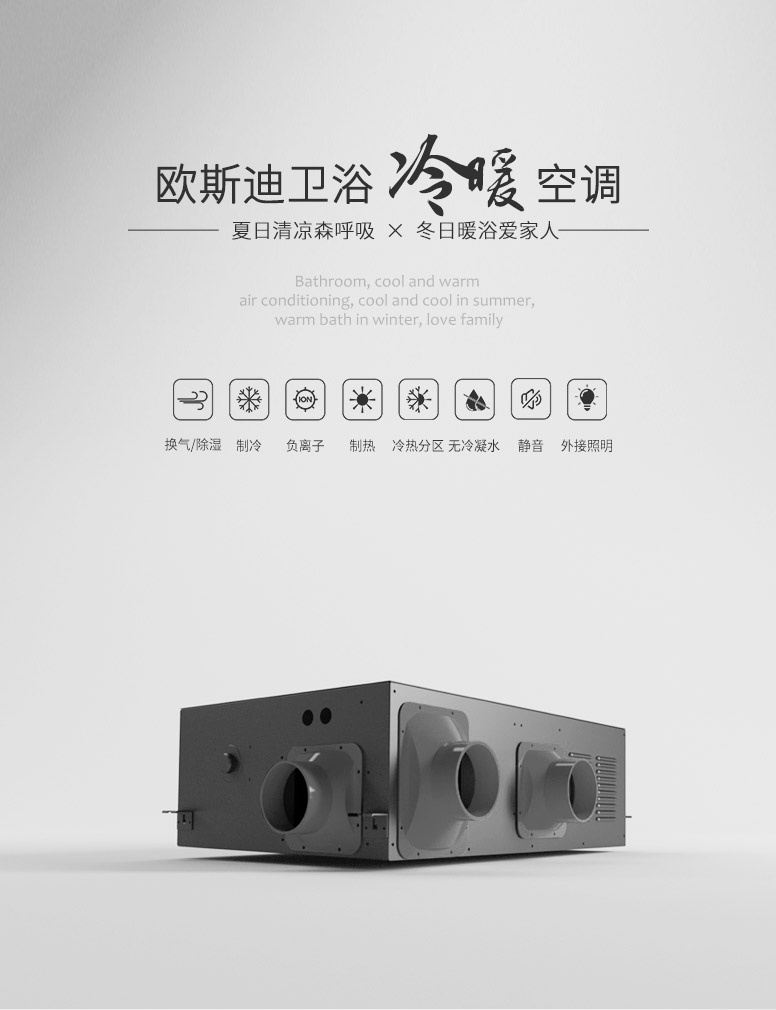 歐斯迪酷悅冷暖空調(diào),冷暖風(fēng)分區(qū),快速吹風(fēng),循環(huán)制冷解決浴室悶熱,循環(huán)復(fù)式加熱均勻暖氣,降低噪音安靜沐浴。一年四季享受不一樣的體驗(yàn)。