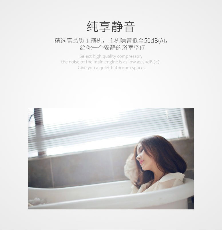 純享靜音:精選高品質(zhì)壓縮機(jī),主機(jī)噪音低至50dB(A),給你一個(gè)安靜的浴室空間。