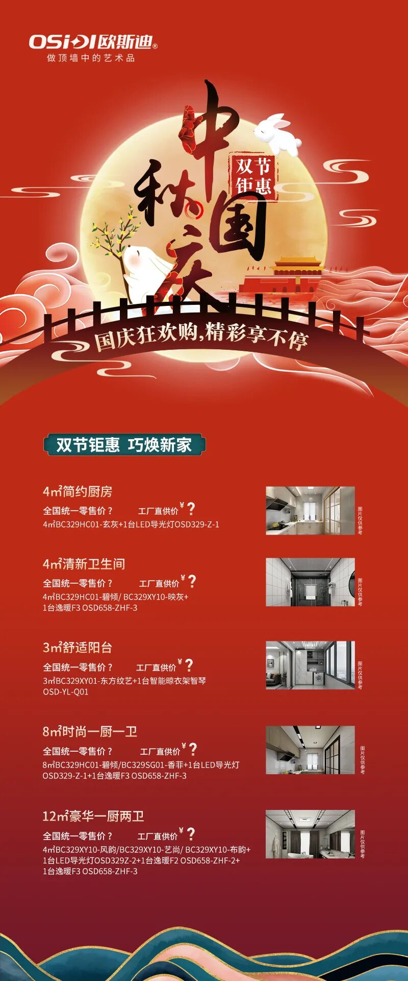 舉國歡慶彩旗飄飄,小家也由內(nèi)而外煥然一新,全新面貌迎接祖國母親的生日的到來。歐斯迪推出多組套餐任你選擇,優(yōu)惠多多。