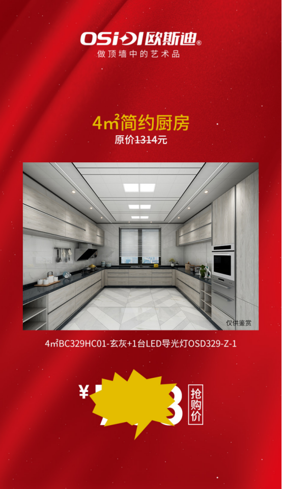4㎡簡約廚房:4㎡BC329HC01-玄灰+1臺LED導(dǎo)光燈OSD329-Z-1